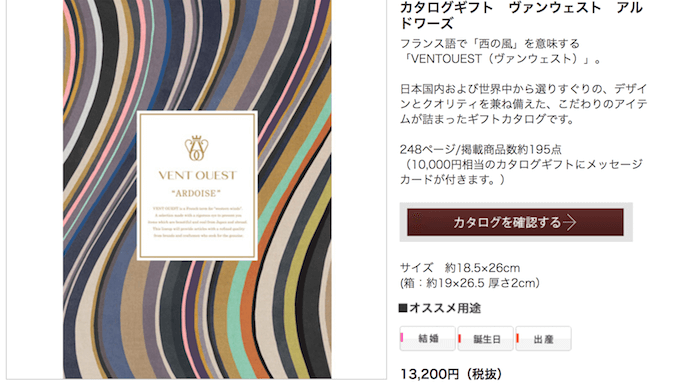 ⇒⇒カタログギフト ヴァンウェスト アルドワーズを公式サイトで購入する方はこちらをクリック!